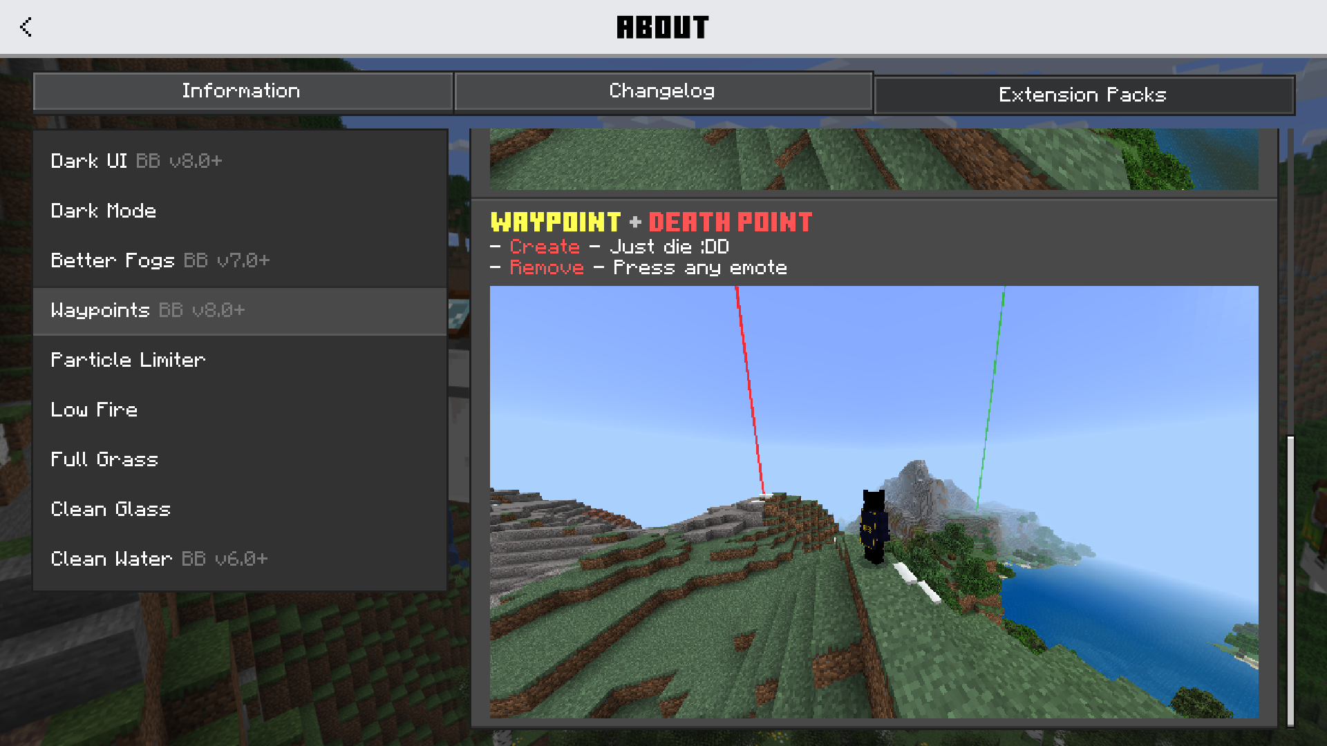 Extra packs like Waypoints, Better Fogs, and Dark Mode are designed to improve your Minecraft experience!