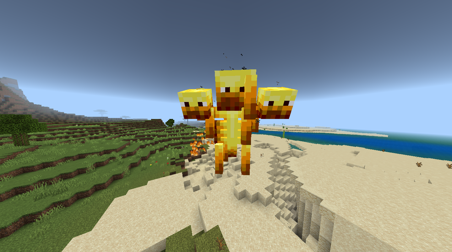 Ender Ghast: His shots are Giant End Fireballs, which upon impact blind all targets in an area and randomly teleport them in a 6-block radius!