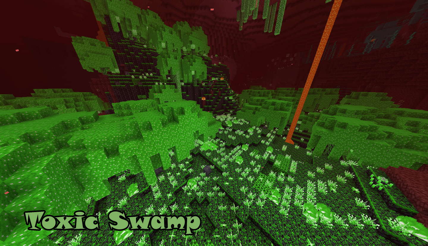 Toxic Swamp: A biome composed of Toxic Nylium blocks, this biome features highly dangerous toxic lakes and is inhabited by Blights and Glowslimes!