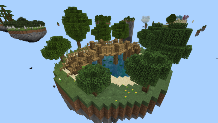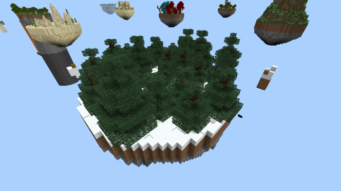 This is a Minecraft bedrock map that will test your survival, exploration and combat skills. In this map, you have to collect or buy 12 end pearls to activate the end portal on stronghold island and face the dragon. But it won't be easy, as you will have to explore 39 floating islands from different biomes, including those in the nether, and deal with the mobs, traps and puzzles they hide.